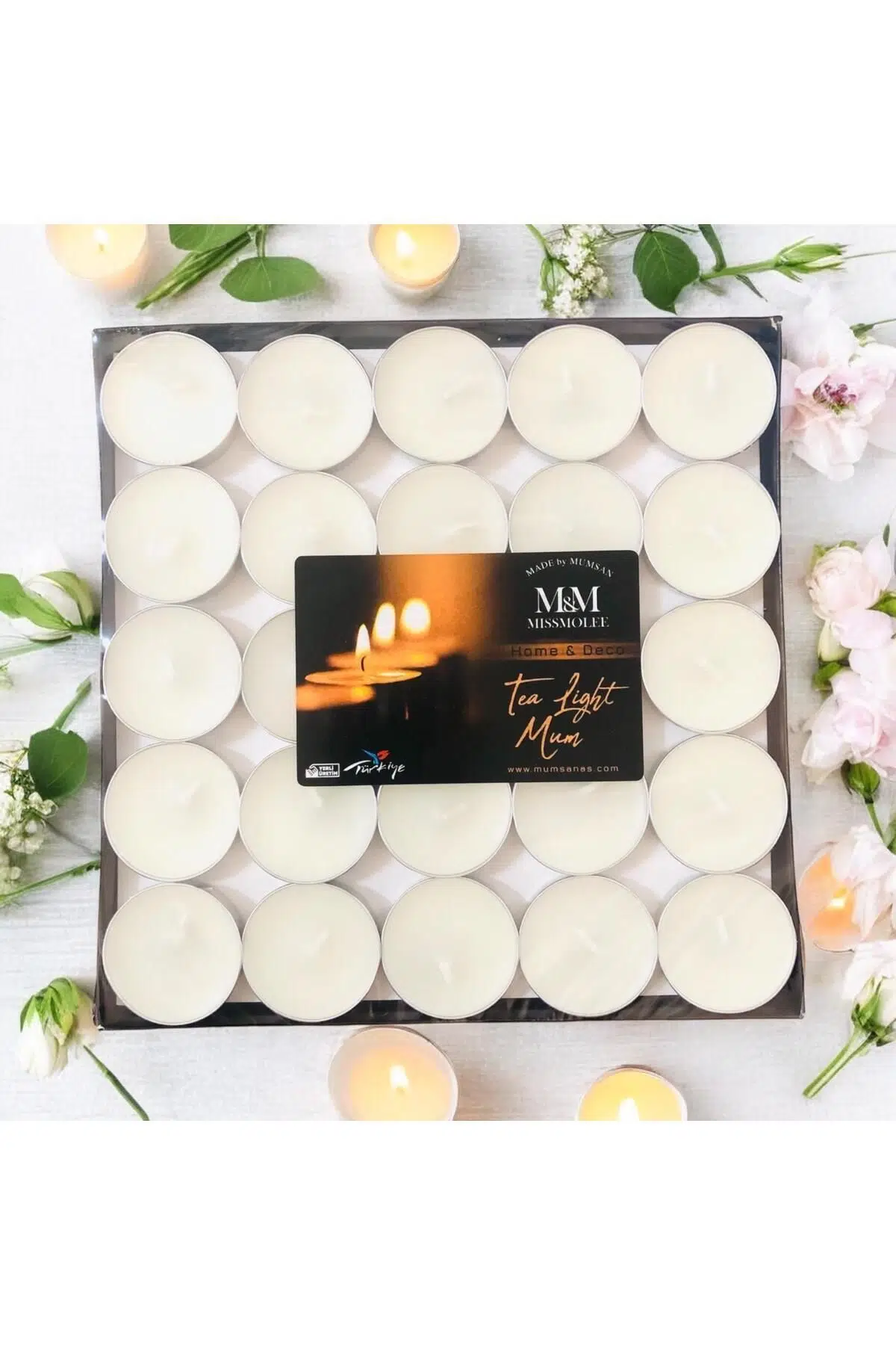 - 50 adet tealight mum içeren paketiyle, partilerinizde veya özel davetlerinizde şıklığı ve konforu bir arada sunar